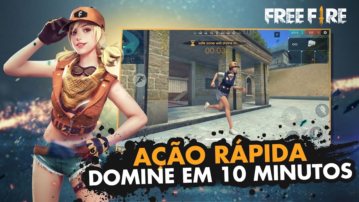 "Free Fire - É um jogo de tiro e sobrevivência disponível no celular. Cada jogo dura cerca de 10 minutos e coloca você em uma ilha remota onde você enfrenta 50 outros jogadores, todos buscando sobrevivência. Os jogadores escolhem livremente o seu ponto de partida com o paraquedas, tentando permanecer na zona de segurança pelo maior tempo possível. Dirija vários veículos para explorar o vasto mapa, esconda-se nas trincheiras ou fique invisível ao deitar sob a grama. Embosque, Atire, Junte equipamentos, há apenas um objetivo aqui: sobreviver.